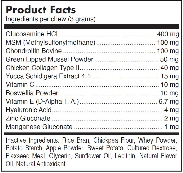 Our natural-based Hip & Joint Pet Supplement has no artificial preservatives, flavors or colors. Our proprietary no-heat production process ensures the full integrity of every ingredient. Many pet owners choose joint care soft chews for their aging dogs. They know the importance of enhancing the overall functions of their dog’s joints and connective tissues. Our Hip & Joint Pet Supplement is packed full of beneficial ingredients to help maintain overall joint mobility. Our joint care formulation is one of the most comprehensive soft chew formulas for dogs available. It is also one of the most concentrated. Joint care soft chews are one of the most popular white label products to sell on Shopify, Amazon and other online platforms. We private label our natural pet supplements in both 60-count and 120-count units, and can package them in either widemouth jars or in stand-up, re-sealable pouches.