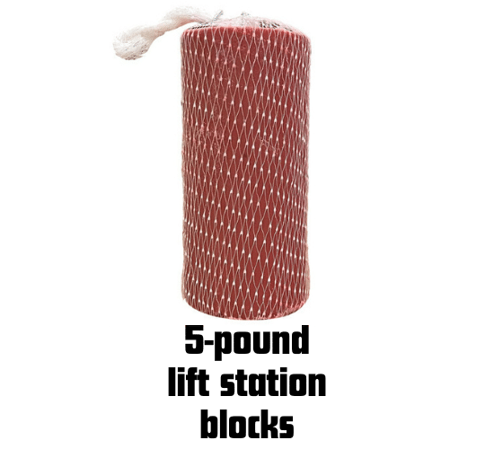 These slow-dissolve Lift Station Bacteria Blocks can be used in Lift Stations for general maintenance to safely keep the Lift Stations running smoothly and reduce the FOG being administered into the Municipal Treatment Plant.