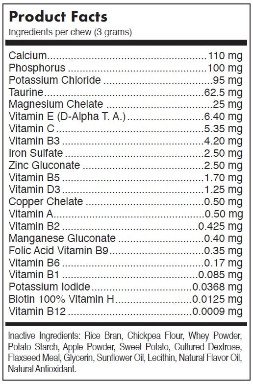 ACTIVE INGREDIENTS (per 3-gram chew):
